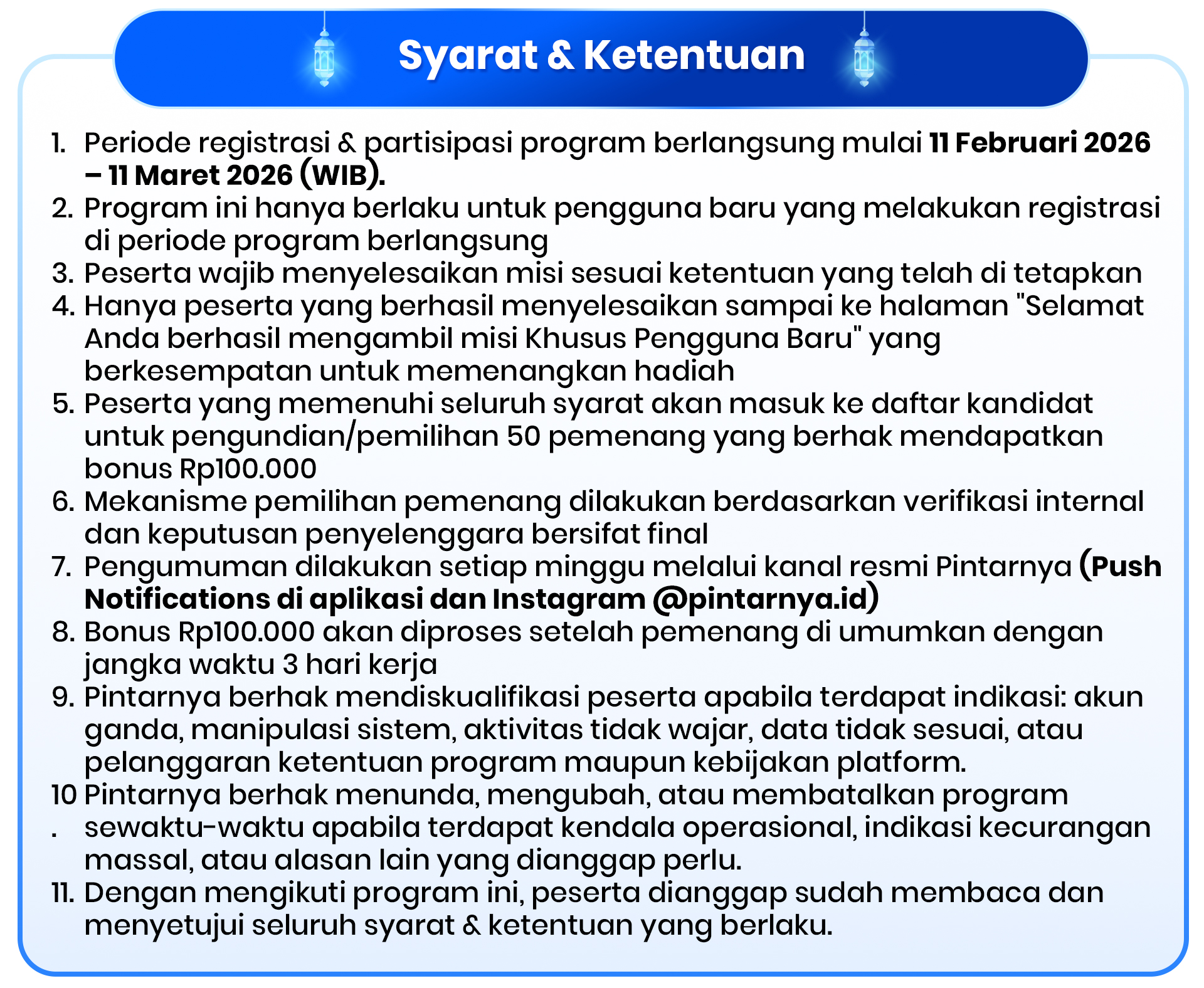 THR dari PIntarnya Pengguna baru